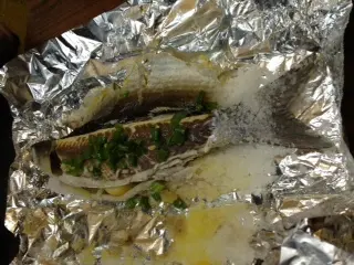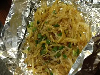 點知, 真係一試難忘!原來係鹽焗烏頭, 用錫紙包住查滿鹽的烏頭一起燒, 烏頭內還有姜, 蔥, 洋蔥.