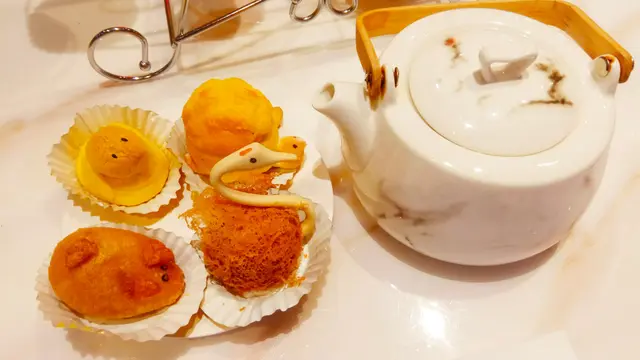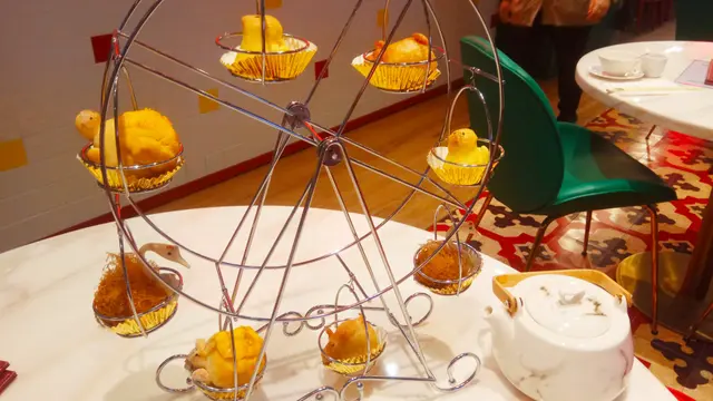 重頭戲 荔園動物反斗城小吃盤 — 來到就是一座 幸福摩天輪,裡面有烏龜、天鵝、小鳥 和傻豬豬。先吃烏龜 — 迷你叉燒菠蘿包,裡面叉燒很多,不過脆菠蘿皮,要改一下喔!再試小鳥 — 迷你鳳梨酥,酥皮脆脆的,鳳梨餡要融化的,才好喔!然後試 傻豬豬 — 迷你柱候鹹水角,口感是意料之中,不過柱候醬的豬肉碎,可以接受。最後試一下 天鵝 — 迷你芋頭角,一般芋頭角的為道,如果內涵花一些功夫,那麼就會有跟大驚喜。