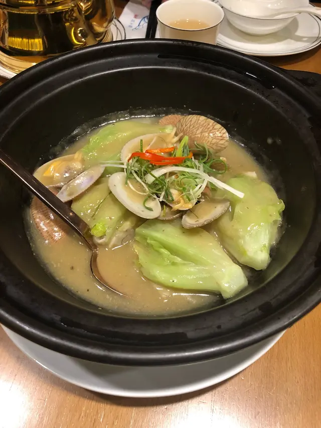 最後菜選了這個蜆蚧煎釀唐生菜膽,這個有趣於汁是蜆蚧汁,魚肉釀在生菜𥚃,好味道😋
