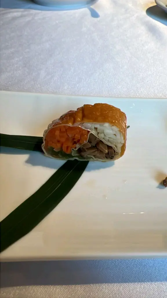 前菜:蜜餞黑豚叉燒 配 四季春煙燻上素卷 - 叉燒腍滑有肉汁味道足熱度剛好,煙燻味輕輕帶過,驚喜素卷係凍點,令到濃味慢慢變淡。