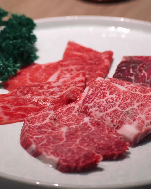 ▶︎ 四款肥瘦口感不一的靚牛 包括薄切肩肉 和牛霜降肉 赤身 牛柳