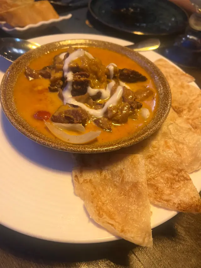 牛腩稔易咬,咖哩汁🥘偏椰奶味重啲唔辣,咖哩汁配薄餅好好食😋
