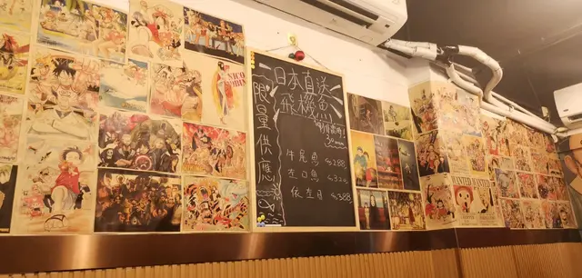 裝修走居酒屋風格,牆上有家傳戶曉的海賊王及千與千尋插畫👍