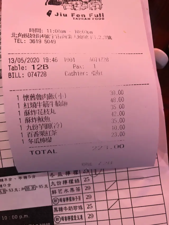餐廳佈置得好有台灣九份嘅感覺,瞬間我哋已經將精神放喺食物上面。