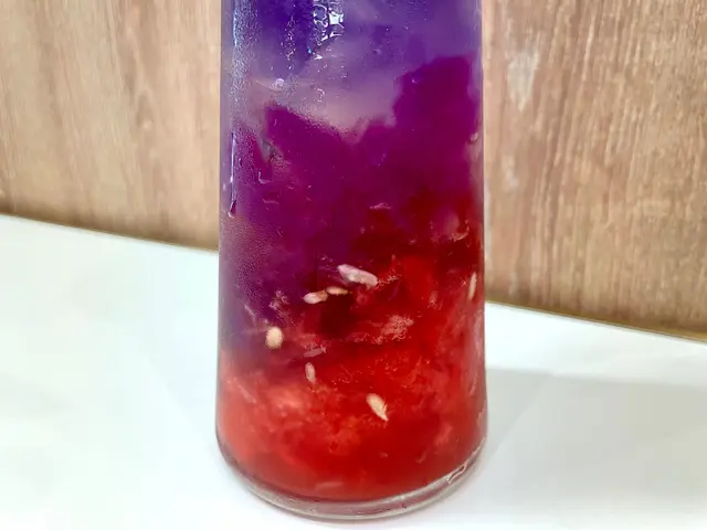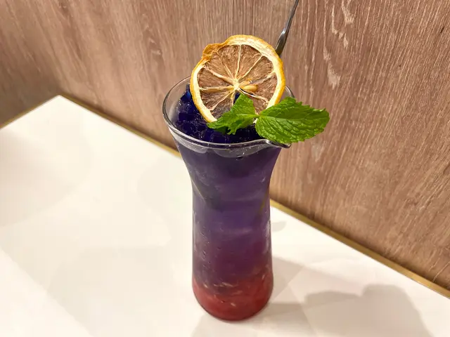飲品方面我見隔離台飲緊好吸引所以又跟風叫左杯「靛」,睇個樣的確唔似我嗌開嘅東西,畢竟我是飲開Ice Americano 嘅人(扶額頭)。其實最吸引我係佢個base 用左椰子水!加埋蝶豆花茶啫喱、檸檬啫喱、西瓜蓉同Pear syrup,令成杯野感覺同真實都唔伏,飲落好清爽好夏天,而且想講杯野好大好抵飲(笑)