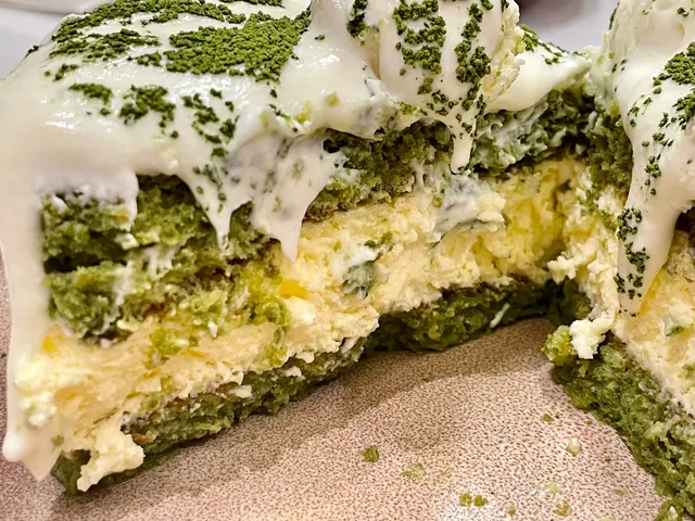 因為岩岩係我同朋友仔嘅生日月,所以我地好無聊咁就地加左個「抹茶提拉米蘇」,叫做有啲儀式感。除左份量不錯之外,佢都有少少玩味,食之前要拎起包喺外圍嘅膠片,頂層忌廉會慢慢圍個蛋糕慢慢流落嚟,鍾意打卡朋友一定要嗌。不過除左外表之外,佢內在味道都好值得讚,入面有兩層蛋糕,中間係香濃芝士,口感比較厚實但又軟綿綿,加上淡淡嘅抹茶味,唔會太甜,係大人嘅甜品無誤!