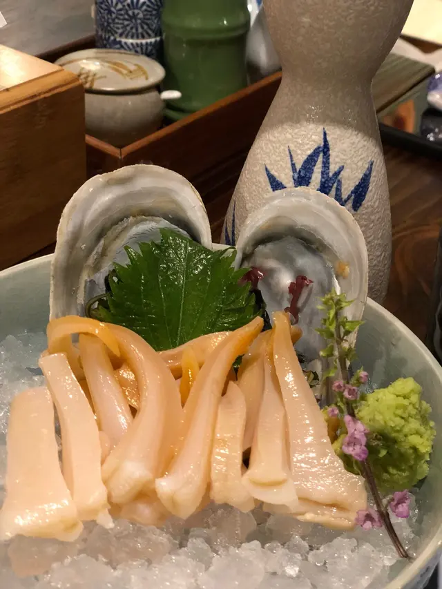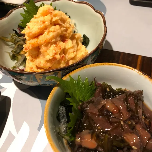 沙律很夠味及鮮,魷魚很適合配酒,但因要看演唱會起初不敢點配酒,怎料言談間此店的店家問我們喝不喝清酒,最後請了我們喝清酒呢😯回想以前在日本旅遊時也曾試過有店家請我們喝,在這裡竟然有遇上這樣的事❤️so warm