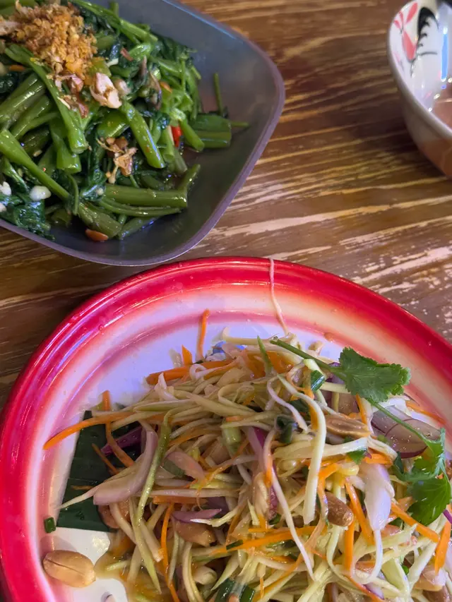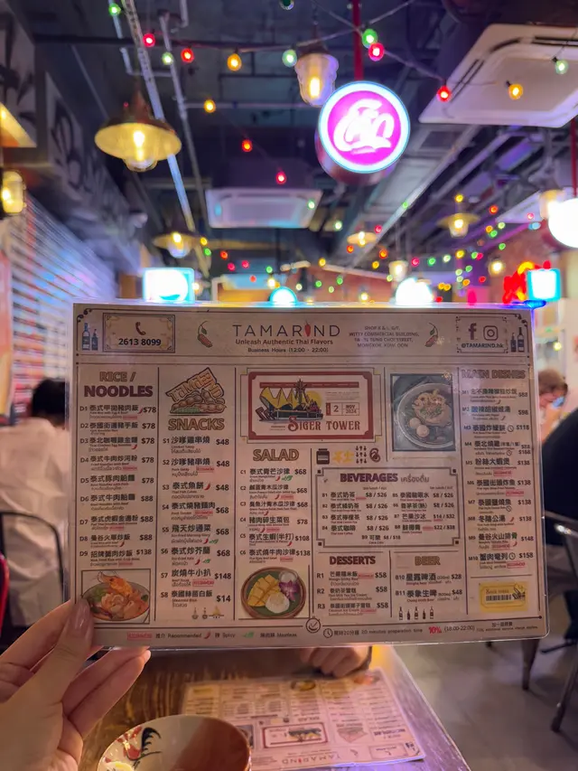 在港2年私藏美食大公开-平价泰餐 vincywangxLevel 32025-09-09781 views Follow 弟弟刚来香港读书,当然要带他来吃下旺角这家来过N次的泰餐了照旧很火🔥工作日都疯狂排队到转角真的夸张但值得!!店里是那种曼谷夜市街头风,霓虹灯+藤编椅+热带绿植,氛围拉满~两个人狂点居然还不到💰300✨✨✨曼谷火车炒饭&泰式牛肉炒河开放式厨房现炒!锅气足!分量大!米饭炒得粒粒分明,河粉也滑溜溜,好吃到停不下来青芒沙律&炒通菜,不会出错的两道dish,青芒沙律酸辣清爽!巨开胃,炒通菜蒜香+虾酱味正到不行排队是有道理的……弟弟吃到疯狂点头,下次还来!250The above review is the personal opinion of a user which does not represent OpenRice's point of view.LikeShare在港2年私藏美食大公开-平价泰餐 Tamarind https://s.openrice.com/QrKT0PbHU00Report Post Ratings5Taste5Decor5Service5Hygiene5ValueDining MethodDine In