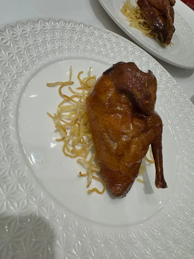 生炸金牌烧乳鸽:烧乳鸽的外皮酥脆与内里鲜嫩多汁的肉质相结合,每一口都能感受到肉汁在舌尖流淌,鲜嫩而不柴,富有弹性却又不失柔软,让人忍不住一口接一口~