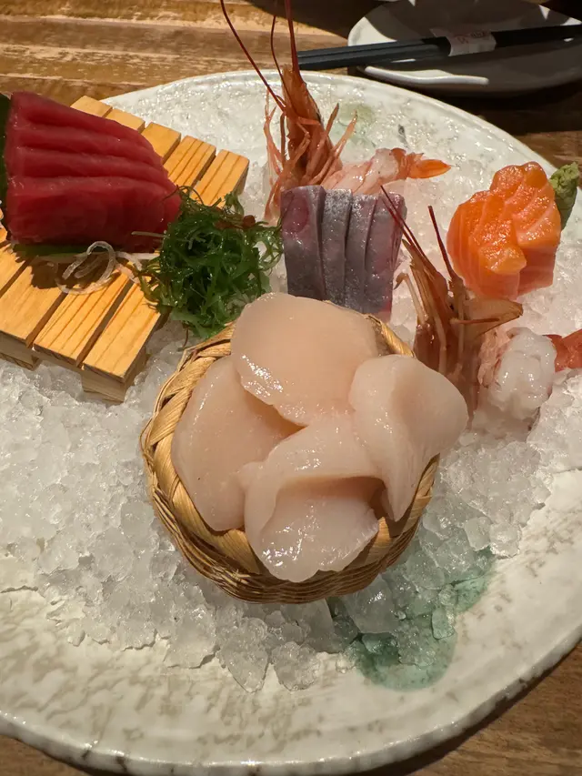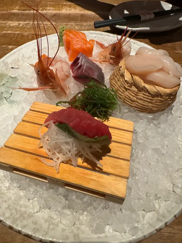 既然同朋友去,當然就每人點返一杯巨峰提子調酒先。主菜方面首先點咗一碟刺身拼盤,新鮮而且魚油重,最喜歡三文魚厚切的口感。