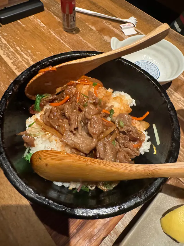 吃到中後段,當然要點一些串燒小酌幾杯,叫了呢間餐廳限定嘅善の水清酒,搭配雞肉串燒和天婦羅非常匹配。最後點了一個石頭鍋飯作結尾暖一暖胃。