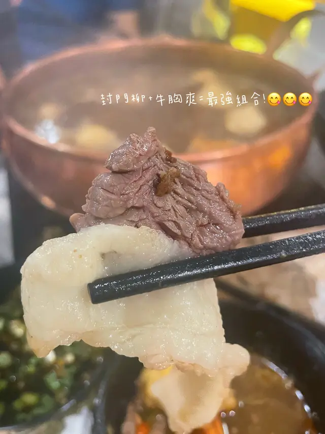 要介紹大家封門柳加埋牛胸爽一齊嚟食❗️❗️❗️真係會返唔到轉頭,封門柳牛味重口感又紮實,配埋牛胸爽超級爽口嘅口感一口咬落去真係好驚艷🤩🤩🤩佢哋黃牛套餐主打嘅黃牛堅卷同埋黑牛後腿肉都好出色,所以霸占左我心目中嘅第二同埋第三名,和牛肩卷嘅口感比較軟滑、油脂比較多,黑牛後腿肉口感就會紮實一啲,但呢個價錢食到咁多咁靚嘅牛真係冇得輸😌😌😌同埋叫呢個set每人會有兩粒免費嘅澳洲和牛牛丸,個口感咁同我平時最鍾意食嗰隻牛骨濃汁牛丸好相似,都係會爆汁出嚟嘅!