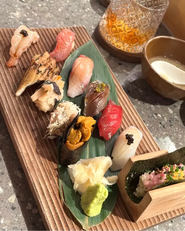 由師傅精選最新鮮嘅食材,當日有金目鯛、油甘魚、赤身、魷魚、海鰻、牡丹蝦、蟹肉蟹膏、海膽等,整體新鮮同高質,特別係魚類,可能冬天肥美啲,海膽都好正,夠晒creamy同鮮甜,最後食埋吞拿魚腩蓉手卷,魚蓉多過飯,口感綿密~