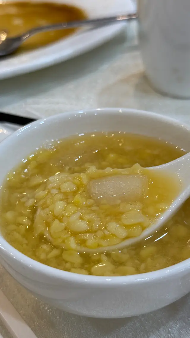 最後姐姐重問我哋試唔試綠豆爽 我哋飽得滯所以要咗一細碗 第一次食幾特別 綠豆口感同綠豆沙完全唔同 原理就好似潮州粥咁樣粒粒分明