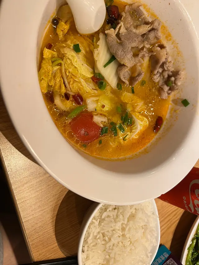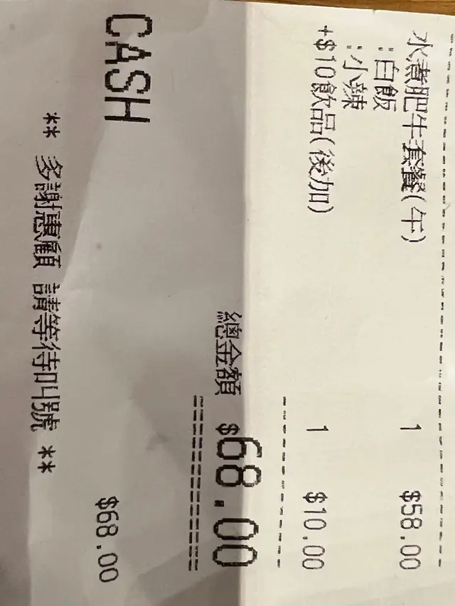58蚊既水煮牛,兜就好大啦,入面d料加埋20蚊都唔知冇,肥牛得4塊,仲要係平時街市買既肥牛切開兩塊,即係實際得2片肥牛,幾塊切半既娃娃菜,1/4個蕃茄,1/10既金菇,咁就收58蚊,全部清一色灼熟加湯都唔緊要,連個份量都係不知所謂,唔知既以為係叫緊30幾蚊下午茶餐,諗住呢間都多人買來食,上次就食隔離上海野已經諗住夠哂伏,點知呢間仲伏過佢,幾個來拎餐見到個份量都係o哂嘴,食過咁多次都係得隔離間越泰係好食份量足,其他都係狼死到爆🫠