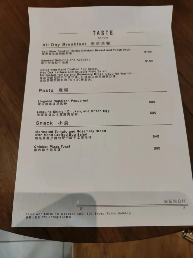 從網上(忘記那裡平台)得知荃灣區有新開小店在芙蓉街的轉角位。進入後,全店內少於20個座位,主要用木傢俬及淺色裝修;而店外有長椅可坐六七個客,方便吸煙客人!我中午1200前抵達,只有一名年輕人主理,後來才多一名也是年青人回來上班。首先店內的menu只有三頁紙,主食有兩款All Day Breakfast,兩款意粉及兩款小食;一頁飲品(主要是咖啡)及一頁窩夫及甜品。