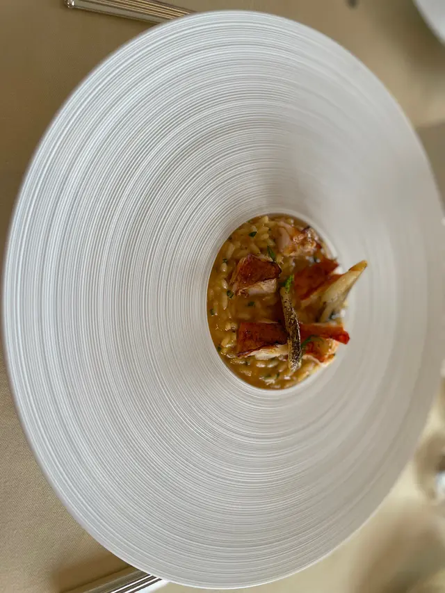 主菜有lobster risotto ,龍蝦🦞天婦羅🍤,兩樣一齊上,有唔同既口感,天婦羅可以更加感受到鮮味,好好食。朋友叫左三黃雞,底下有層椰菜、番茄🍅等的混合物,係雞胸肉。