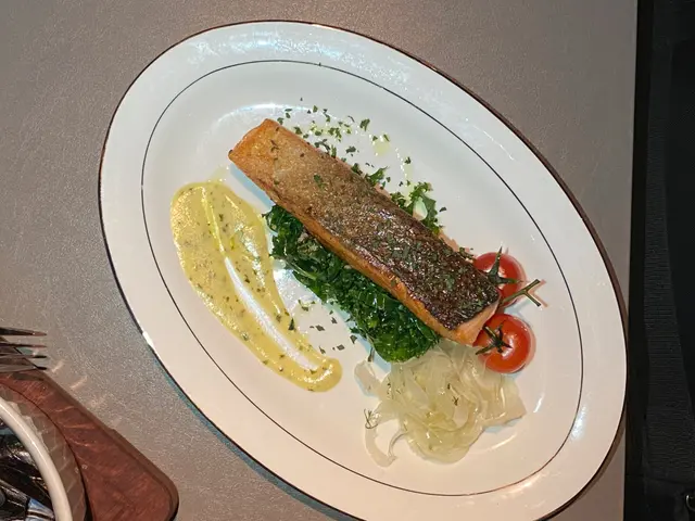 最後點了一份三文魚排,八分熟,魚皮香脆,如果再生一點就更佳了!此外還另加一些羽衣甘藍,健康!