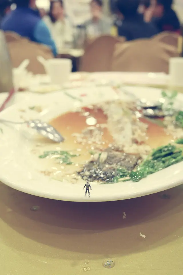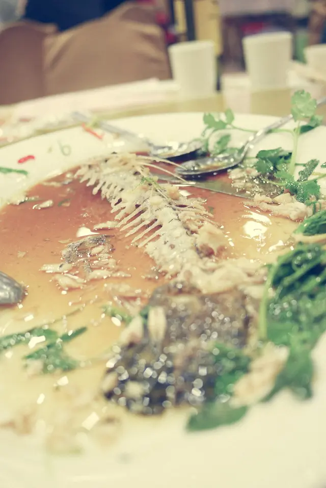 不消兩三下子手段,桌上整條石班被一掃清光,連頭顱也消聲匿跡,只剩下空蕩蕩的魚骨。
