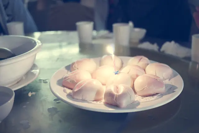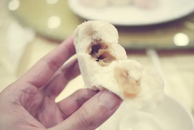 怪不得壽包上桌時要先把燈熄掉。重新亮燈後,壽包裂紋處處,賣相不算漂亮。