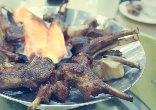 用灼熱石頭焗蝦還可以,烤羊鞍應該沒甚麼可能,雖然羊鞍上桌時火光熊熊,中間部份純粹增强視覺效果,石春是作為保温用途。