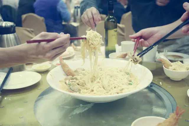第三道以蝦入饌的菜式,一大盤伊麵上桌,務求要大家捧着肚子離開方肯罷休。