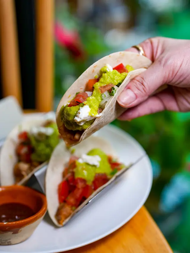 🏵[食評] Taco餡料豐富,以蕃茄、蘑菇、洋蔥、牛油果、芝士⋯所有材料都非常搭配。肉類可選雞肉、豬肉、香腸、魚⋯•等等。素食或過敏人仕,仲可以選擇無麩質餅皮。