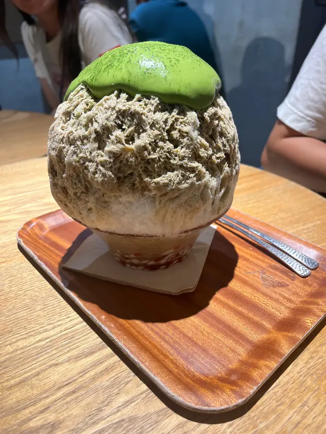因為係排隊嘅時候已經落咗order,所以入到嚟坐低好快就有得食啦,第一啖落口已經好濃嘅焙茶味,第二啖開始食到裏面嘅抹茶,食食吓發現,原來喺刨冰裏面仲收埋咗白玉同餅乾碎,最令人意想不到係裏面粒白玉仲係好軟腍腍,真係好好食呀