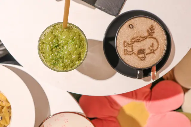 偏奶味既焙茶 口感頗滑 仲有好可愛既草民公仔圖案 吸引埋隔離枱既小朋友過黎睇🤣