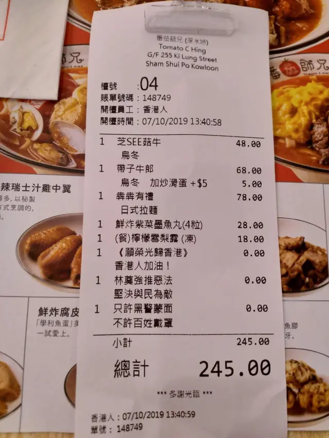 不過就為左佢張單的"香港人加油!"等下係值得既!