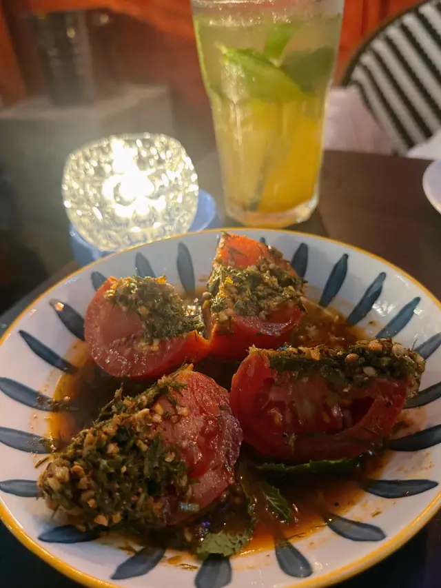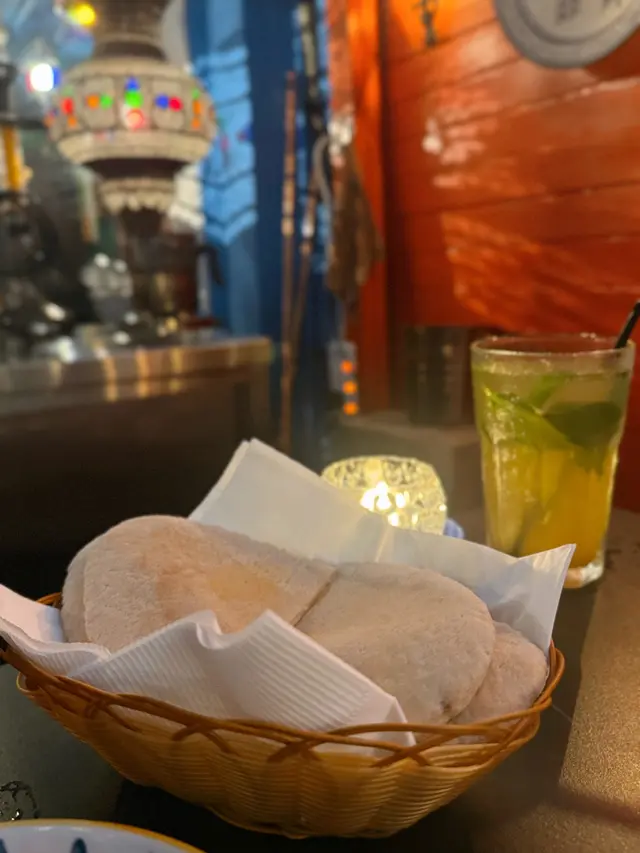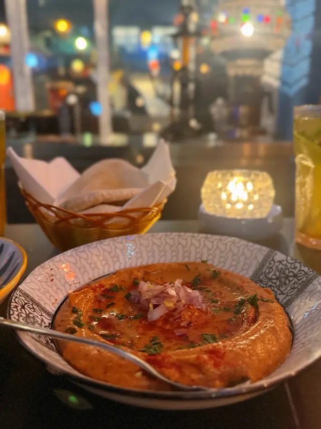The owner recommended two snacks 🍅 Zalouk, roasted tomato and eggplant dip, it’s sweet and sour, thats appetizing. 🍴Hummus with Black Truffle and Khobz, the taste is smoothness and rich but not greasy.