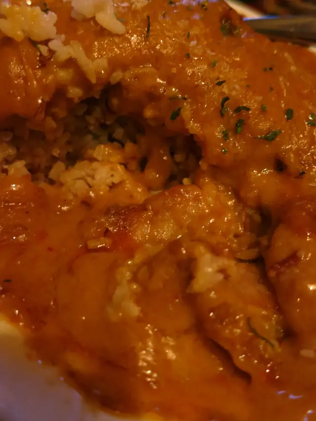 微辣的咖哩汁配上有咬口的紅米飯