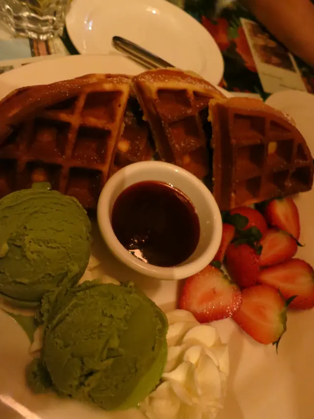 窩夫,本人甜品的選擇偏好,正中的是草莓醬