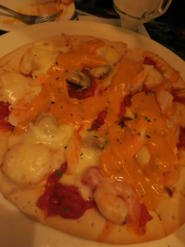 食物:點了芝士薯條,千島海鮮PIZZA,蒜蓉蜆意粉,咖哩豬扒飯,士多啤梨伴抹茶雪糕窩夫
