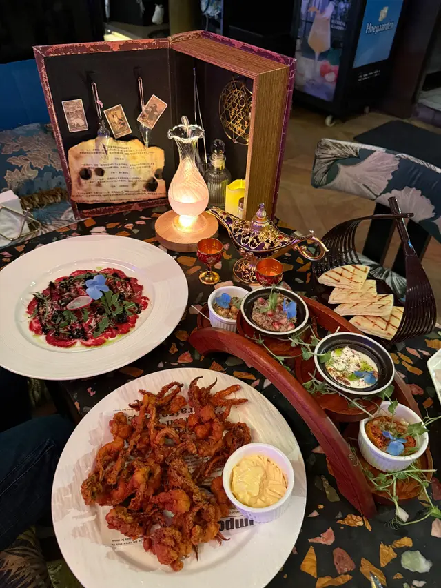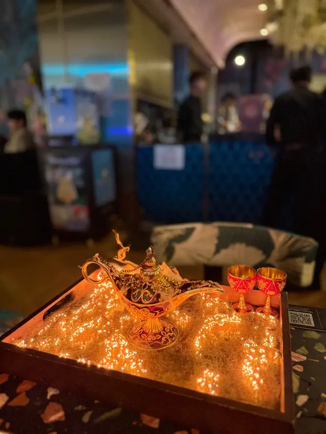 1001 Night係一千零一夜主題雞尾酒,充滿神秘色彩同互動性。以蘭姆酒或威士忌為基底,加入中東玫瑰水、石榴汁、青檸同薄荷,入口花香撲鼻,微酸帶甜,清新解膩。上枱時配搭點火煙燻效果解鎖式飲法,令人有探險嘅感覺。夢幻感十足,有得玩有得飲,係打卡必點之選😋