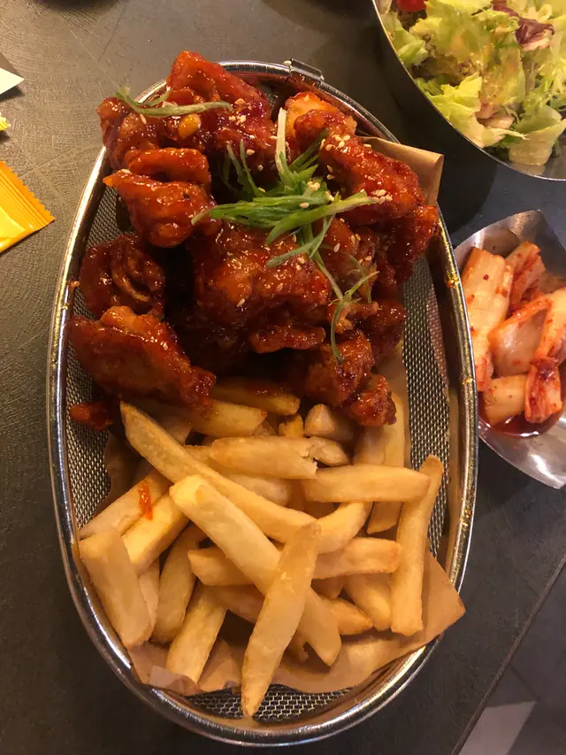 有薯條🍟但不夠熱,味道可以但雞肉比其他嘅韓式炸雞差