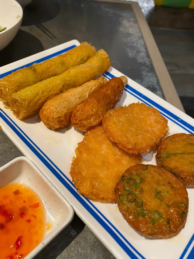 拼盤有炸蝦餅,炸魚餅,蔗蝦同泰式春卷。當中比較出色嘅係蔗蝦,用蝦餅捲住細細碌蔗仔,蔗汁甜甜地,同蝦餅好夾!