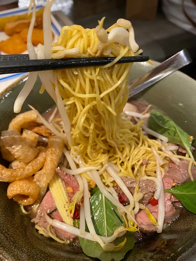 慢煮牛柳好腍,一啲都唔鞋,加上濃濃嘅湯底,同特色嘅雞蛋麵。值得一提嘅係脆卜卜嘅炸豬皮,索咗啲湯汁真係好好味,口感賣相味道都一流!