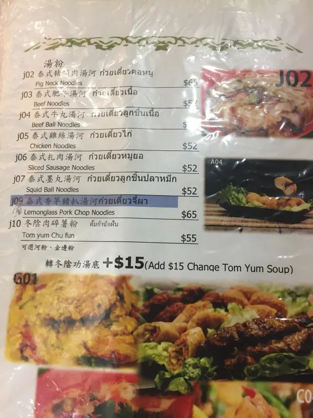炭燒豬頸肉撈檬套餐($45),撈檬的醬汁不多,如配馬拉盞椰菜苗吃,其鹹香會令撈檬變得惹味。豬頸肉量多,燒得香脆,配上極大份量的滑檬粉,非常飽肚。
