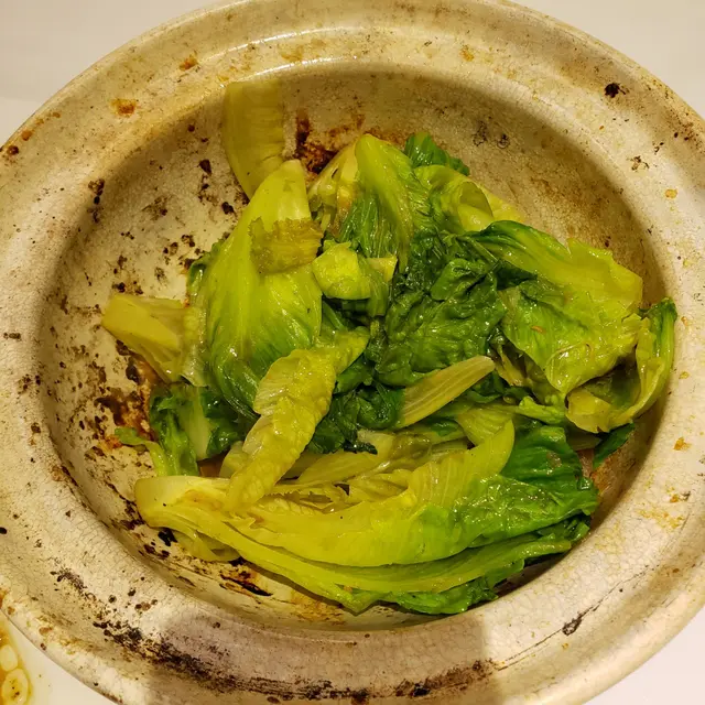 這裡的啫啫生菜煲用上原個生菜,撕好一片片後再放上這個熱鍋