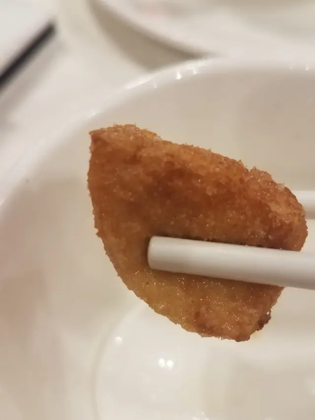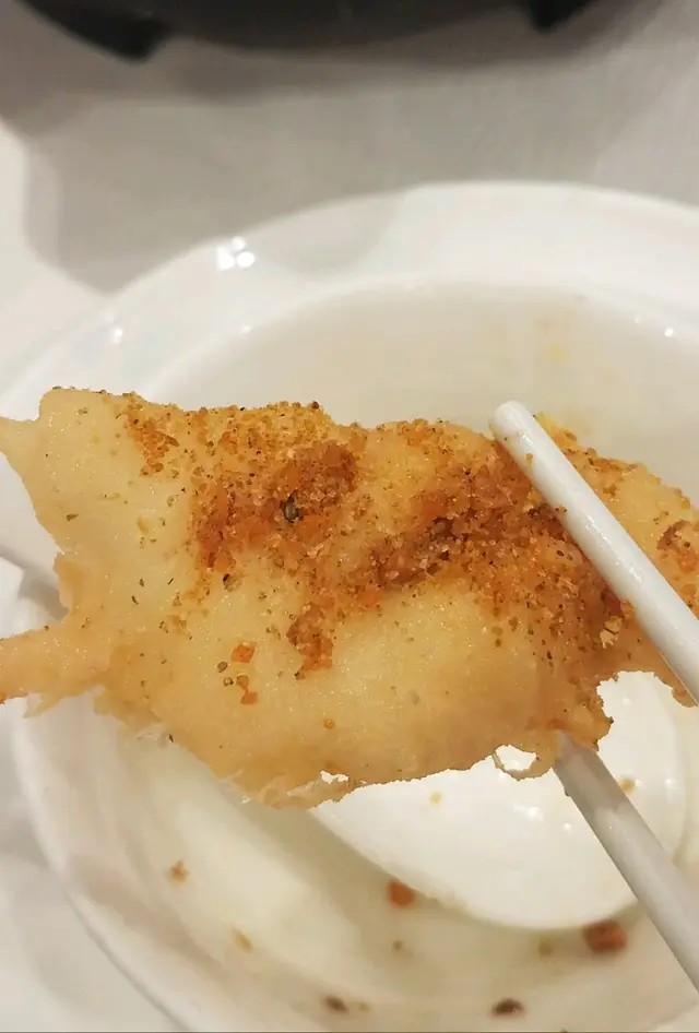 剛剛炸好脆卜卜,雖然粉漿厚了一點,但味道好啱口味,越食越可口,店員建議可以灑上盆鹽(頭抽精華)進食更香口。