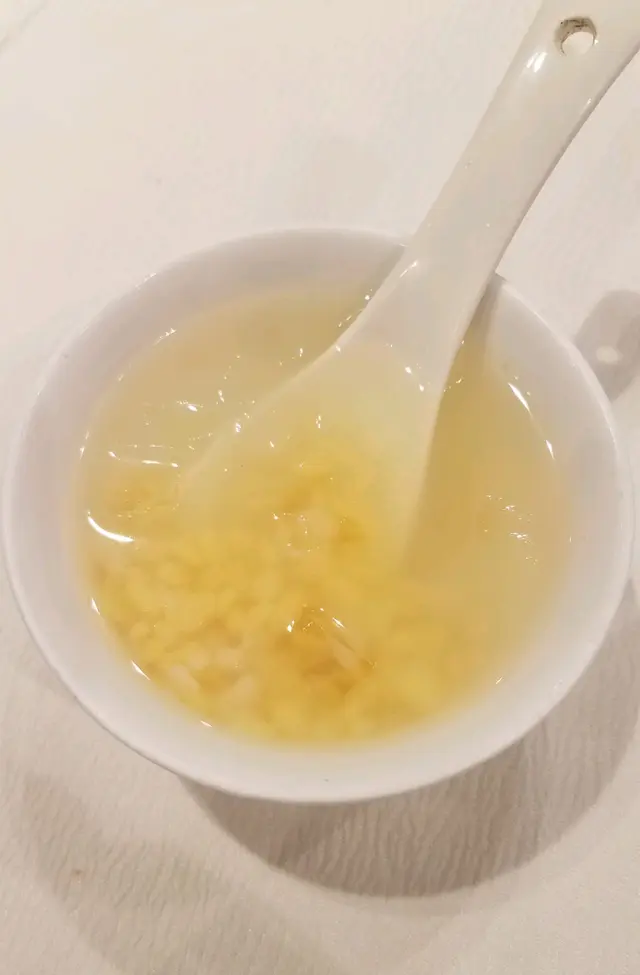足料老火湯,份量有五碗,香甜味美,透明的鯊魚骨軟淋淋,豐富骨膠原。