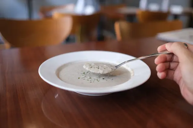 先來個Lunch Set, 當日的餐湯有蘑菇忌廉湯及南瓜湯的選擇,我選了前者。蘑菇忌廉湯是打碎蘑菇的做法,作為第一道湯品濃度適中,不會太膩。