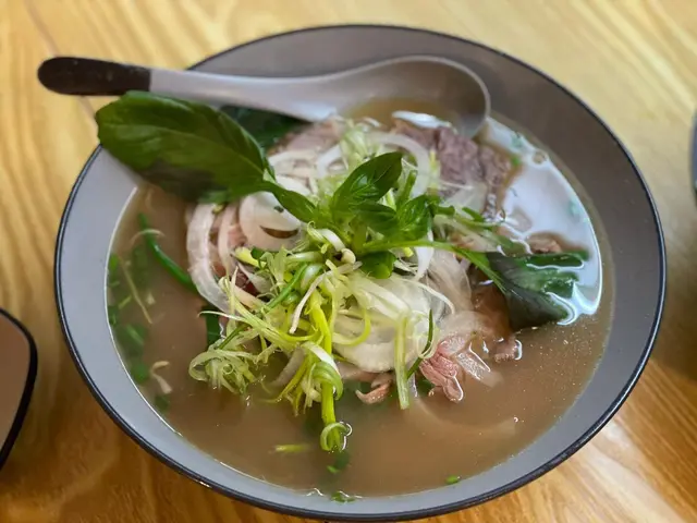 望落去賣相一流!上邊嘅蔥同洋蔥都超級足料!食生牛肉河第一件事就係試下佢啖湯先,香味濃郁,又夠牛肉味!正!😋