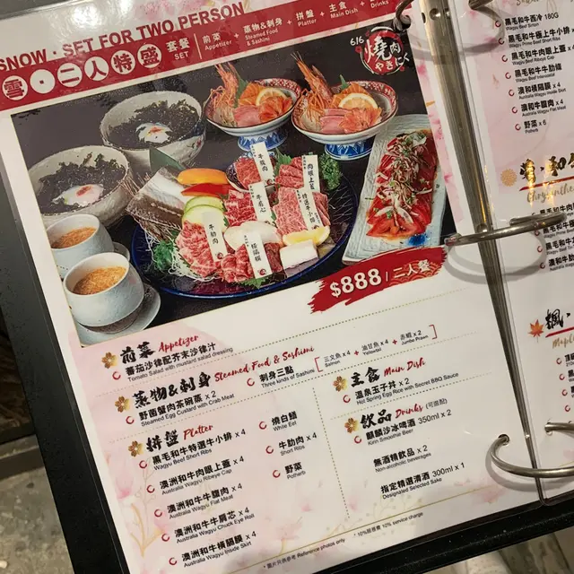 616燒肉酒場,肉類選擇花多眼亂🤣,最後同朋友決定,直接叫佢哋嘅套餐就算,今次朋友請客🤪所以就叫咗個「雪。二人特盛」,成惠$888,食返餐好嘅✌🏻