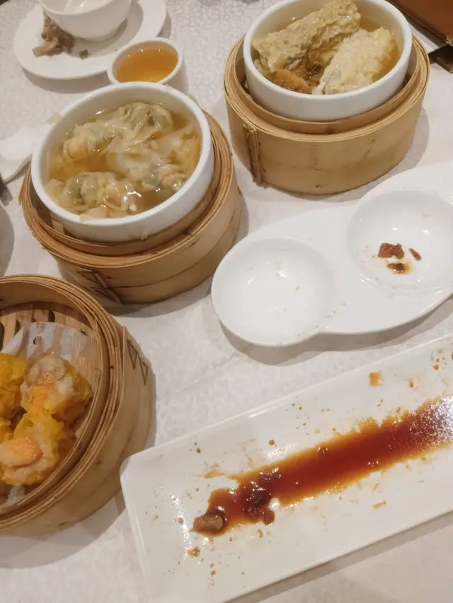 酒樓出名的便,靚,正。每次我都會叫藥膳鳳爪,貪它的湯好好味,藥材十分豐富,有黨心,杞子等材料,吃落暖笠笠,雞腳煲得很淋。 蟹子燒賣 大大粒,蟹子很多。腐皮 鮮竹卷裡面的材料很足,鮮蝦水餃也幾好吃,裡面有木耳和蔬菜,感覺很清爽,彈牙。我們還吃了雪山叉燒包,熱辣辣的,很好味, 金銀炸兩腸,軟軟的腸粉包裹著的脆脆的炸兩,加上甜豉油, 啵啵聲好好食。