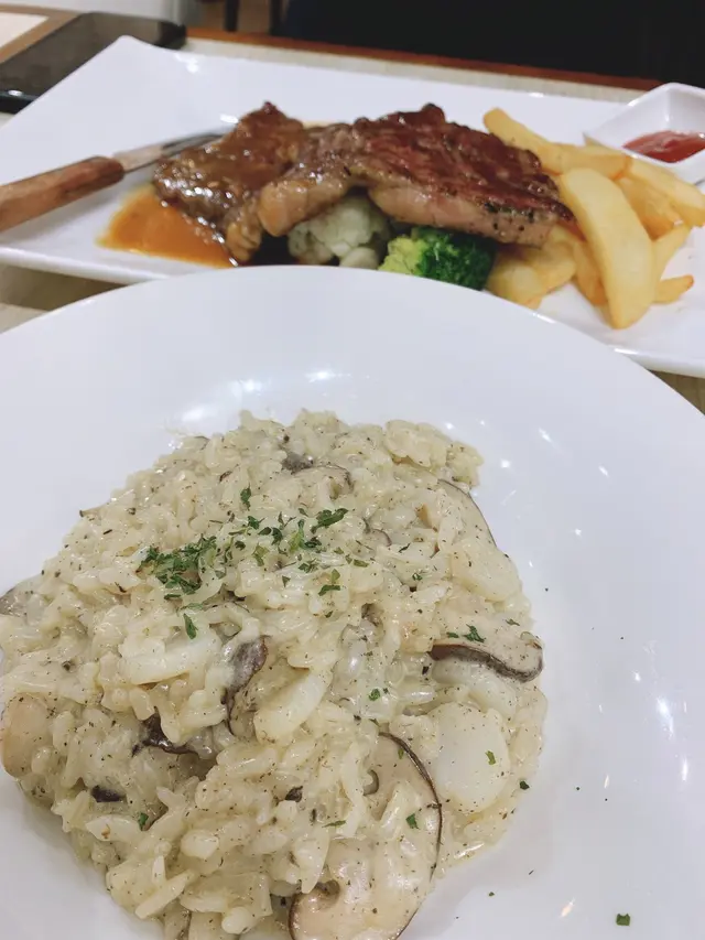 我地叫左個晚餐「紐西蘭肉眼扒」連餐湯餐飲,另外我散叫左個黑松露帶子意大利燴飯+$10湯連飲品。