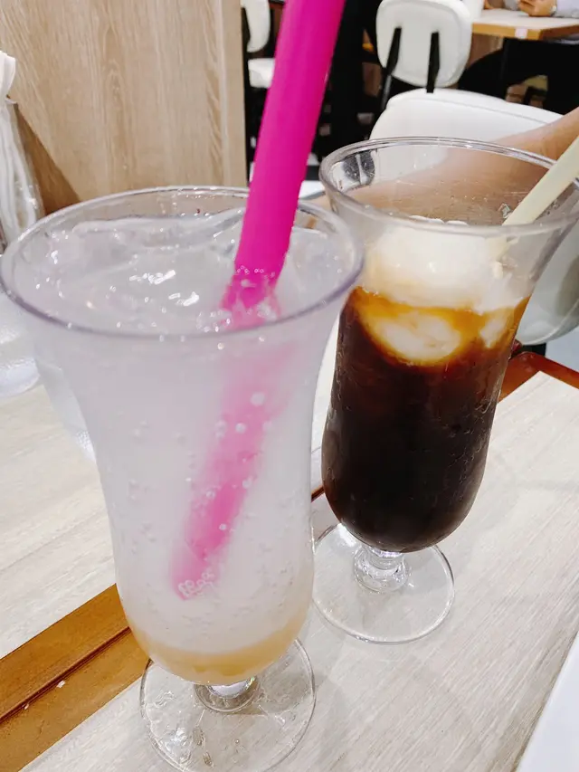飲品除左平時飲開,叫餐可正價減$10,我地叫左棒子雪山咖啡同乳酸梳打。