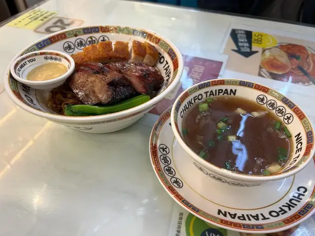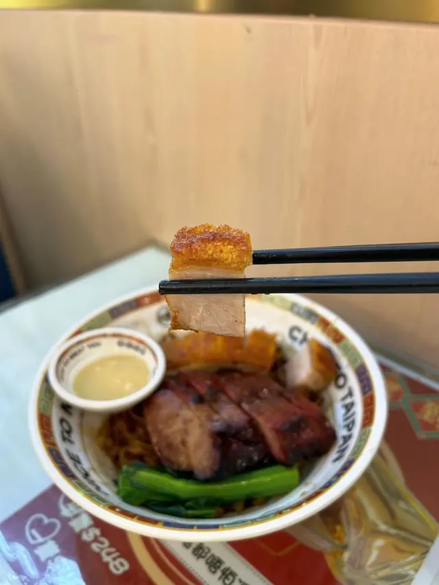 果然係燒味專門店👍🏻無論係叉燒定燒腩仔都認真高分!先介紹一下佢哋嘅叉燒,叉燒外皮燒到有焦香,滿滿嘅蜜汁味,肉質保持到鬆軟,肥瘦適中😍燒肉就更加係靚嘅五花腩,肥瘦相間,外皮都係非常之脆!脂肪層唔會好厚,入口即溶,而且可以增加燒肉嘅油香~ 另外加咗$10試鵝汁撈粗,撈粗用咗鵝油相對無咁黏口,令麵條較爽較滑口!味道相對濃啲但係配埋個湯就中和番,如果唔鍾意食飯嘅朋友可以一試~