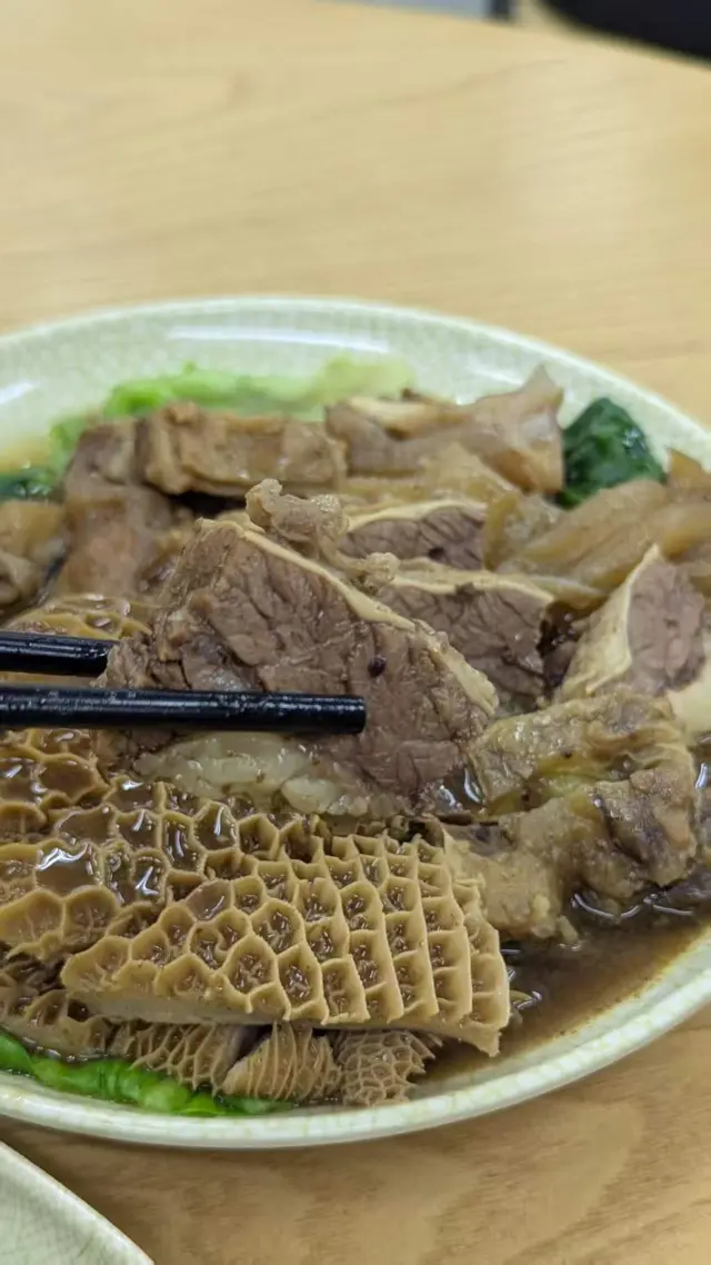 牛三寶包含牛腩、牛筋與牛肚三種部位,滷得入味,肉質軟糯與筋皮Q彈並存。因點了大份,材料份量十足,生菜鋪底,牛腩軟腍,滋味滿分!